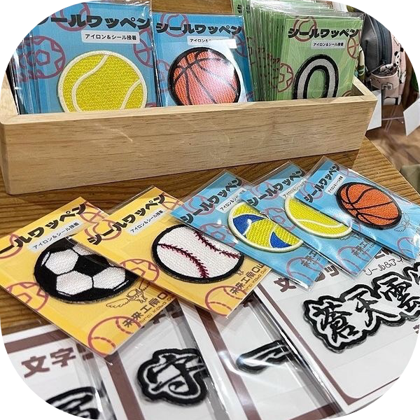 各種スポーツウェアの名入れはもちろん、作業着やユニフォームに最適なポロシャツの刺繍加工、チームやサークル等にお揃いのロゴ入り帽子、オリジナルワッペンの製作も承ります。